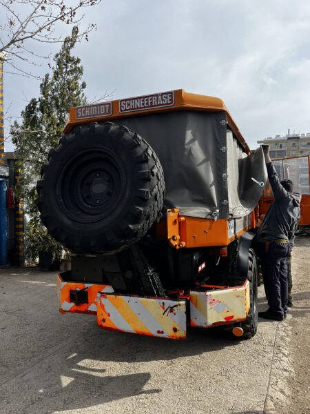 U900/406: 965 χλμ., 16 (2Χ8) ταχύτητες, ελαστικά 12.5 Χ 20 μεικτού τύπου, έξτρα προβολείς ψηλά, εισαγωγή αέρα υπερυψωμένη, φάρος, καλοριφέρ, ρεζέρβα, παρτικώφ 540/1000. Εκχιονιστικό schmidt VF3 φρέζα, OM 355968 turbo 260P.S./2200 στροφές, κινητήρα πίσω 240 ώρες, 250εκ. Φάρδος, 150εκ. Ύψος, 1.350κιλά βάρος φρέζα, 1970 έτος, ανακατασκευή από schmidt 12/1985+02/1992. Γενικό service 2025.